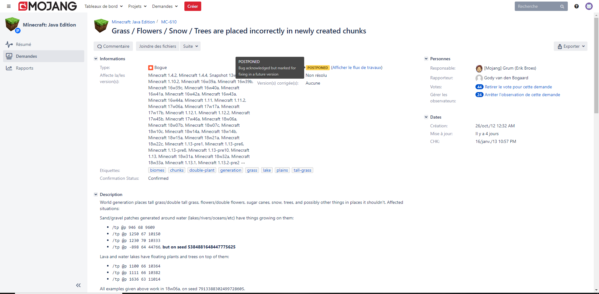 Most of these words cannot be translated by Mojang Studios due to Atlassian's decision not to implement this functionality for Jira, which is the software our bug tracker is based upon. See JIRASERVER-40049 for more information.