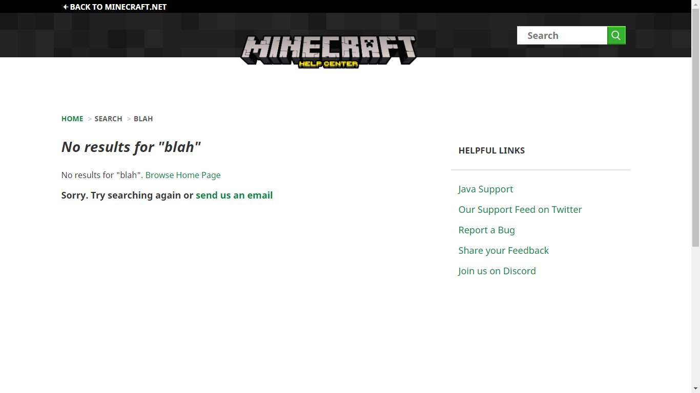 While I'm trying to click the "Send Us An Email" button on the Minecraft Help Center webpage, it sends me to the "old" Mojang page with the title "We Are Moving!", which used to send me to the "Email Us" page.