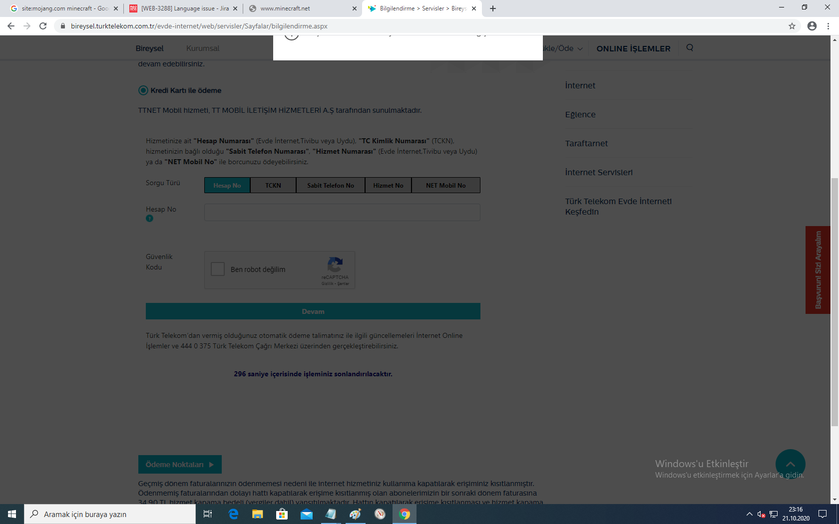 Thanks [Mod] Galaxy_2Alex We fixed it a redirect to insecure website. Changed website https://bireysel.turktelekom.com.tr/evde-internet/web/servisler/Sayfalar/bilgilendirme.aspx to https://www.minecraft.net/tr-tr
