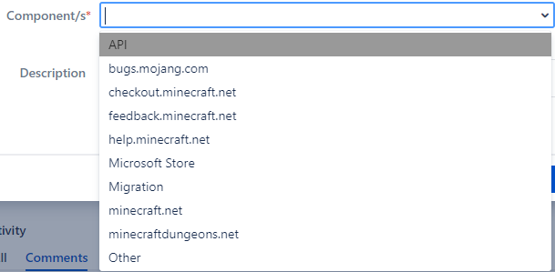 Components: bugs.mojang.com