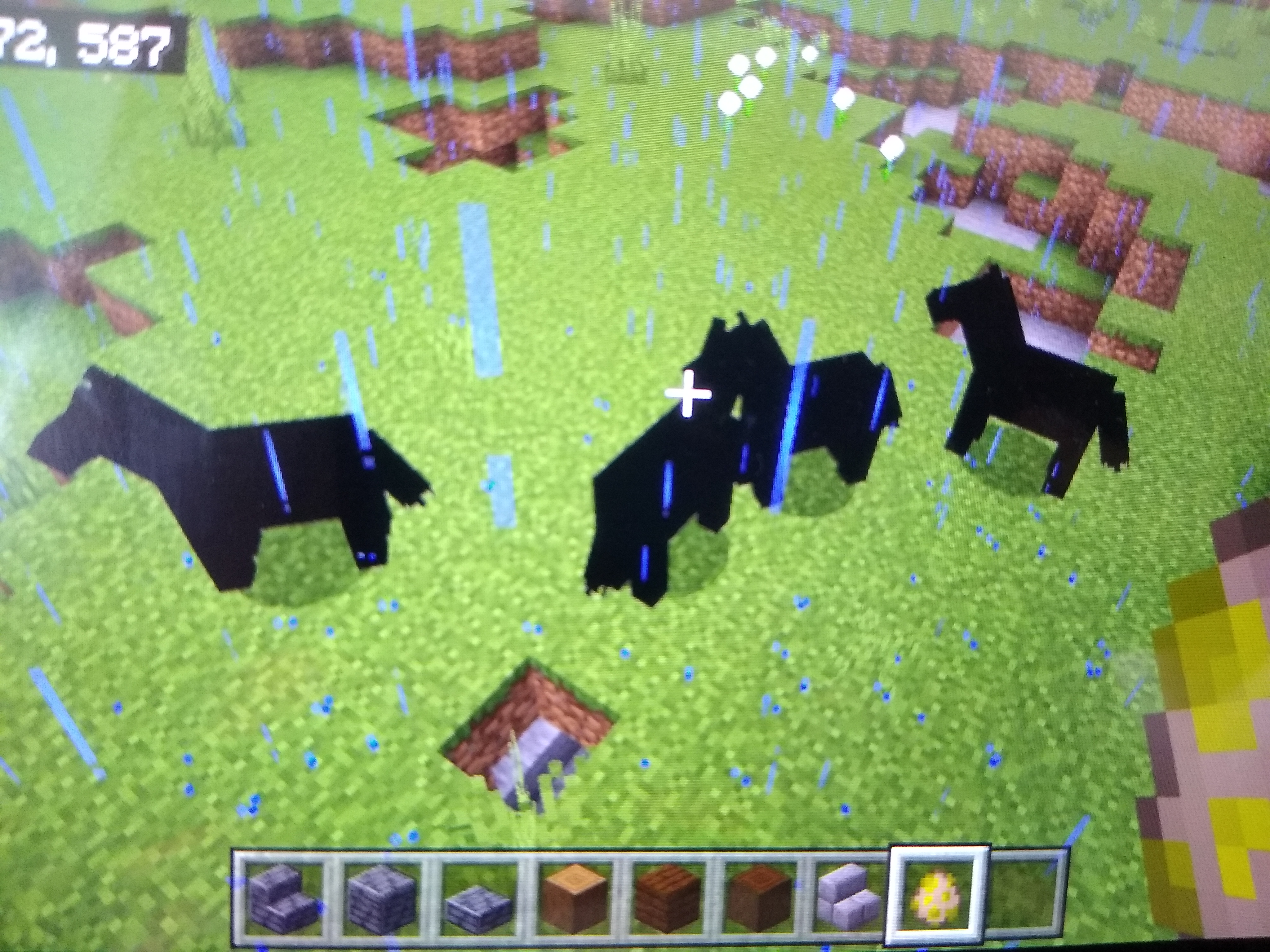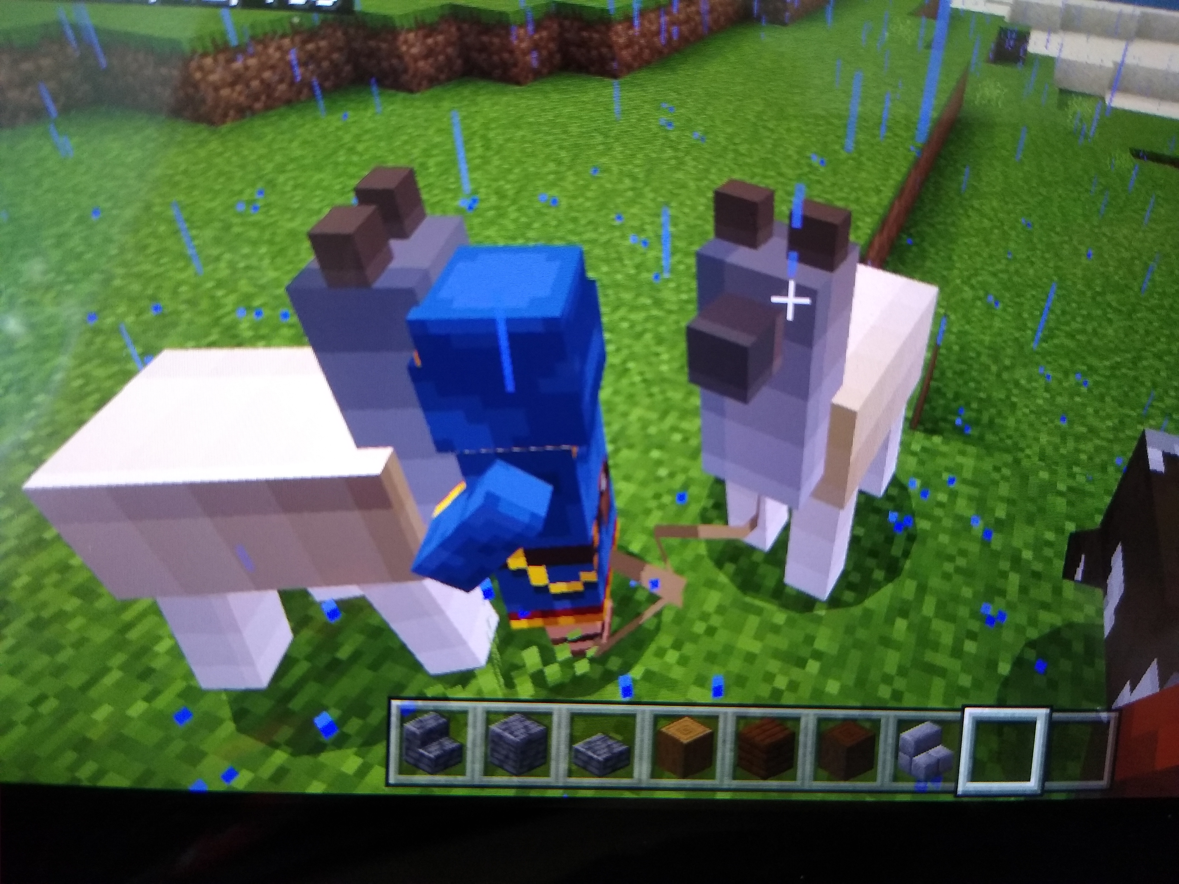 I thought it was just that one world glitching, until I loaded my survival world and I saw my horse and llama having the exact same issue. Their heads grey-scaled and everything. (My horse's body was creme-colored, but it's actually brown?)