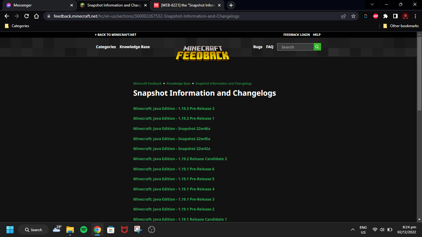 Components: feedback.minecraft.net