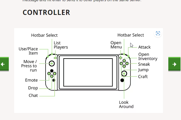 The Jump and Sneak keys are in the wrong locations on the controller image for Nintendo Switch. In the looking and moving section below Jump is correctly listed as A, and sneak correctly listed as B.