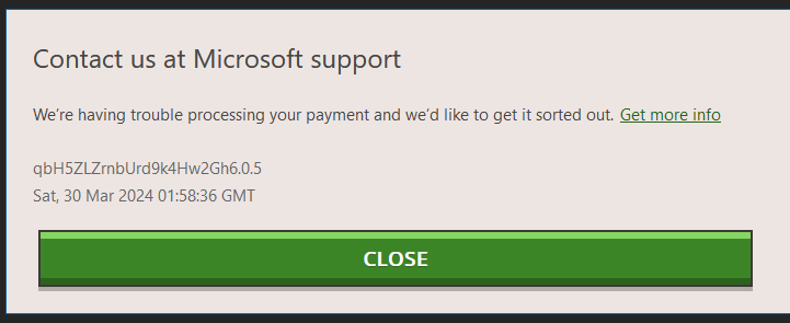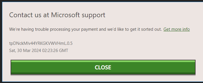 We're having trouble processing your payment and we'd like to get it sorted out. Get more info