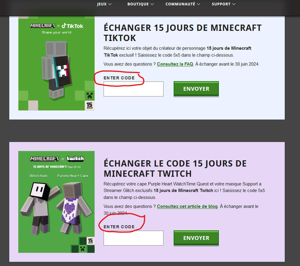 I recently found a translation bug on the minecraft.net reedem page. It says "ENTER CODE" instead of "ENTREZ LE CODE CI-DESSOUS" (French version: https://www.minecraft.net/fr-fr/redeem ).