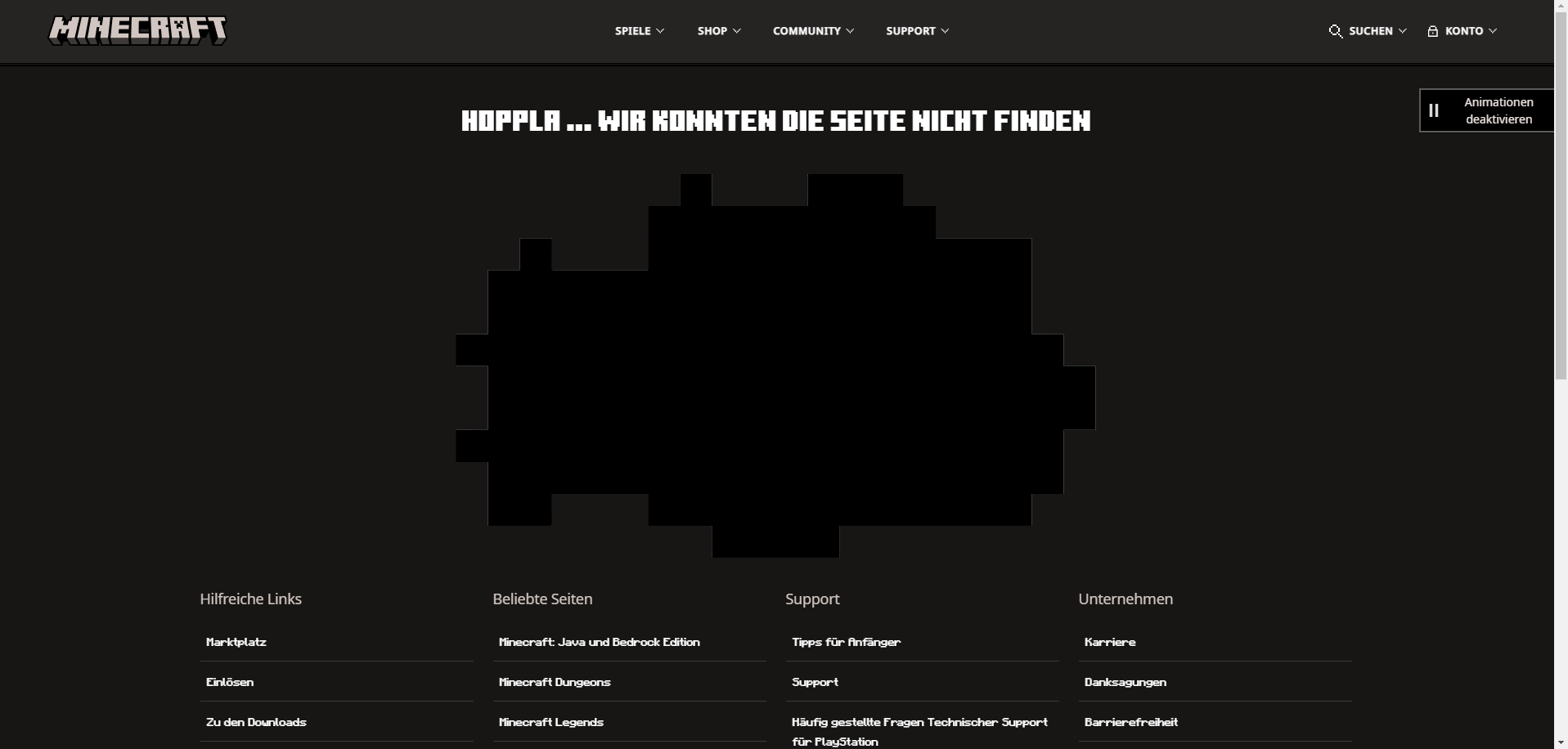 The footer of every page on https://www.minecraft.net/de-de includes the "Impressum" link required by German law. However this link is pointing to https://www.minecraft.net/de-de/impressum which is a page that doesn't exist.