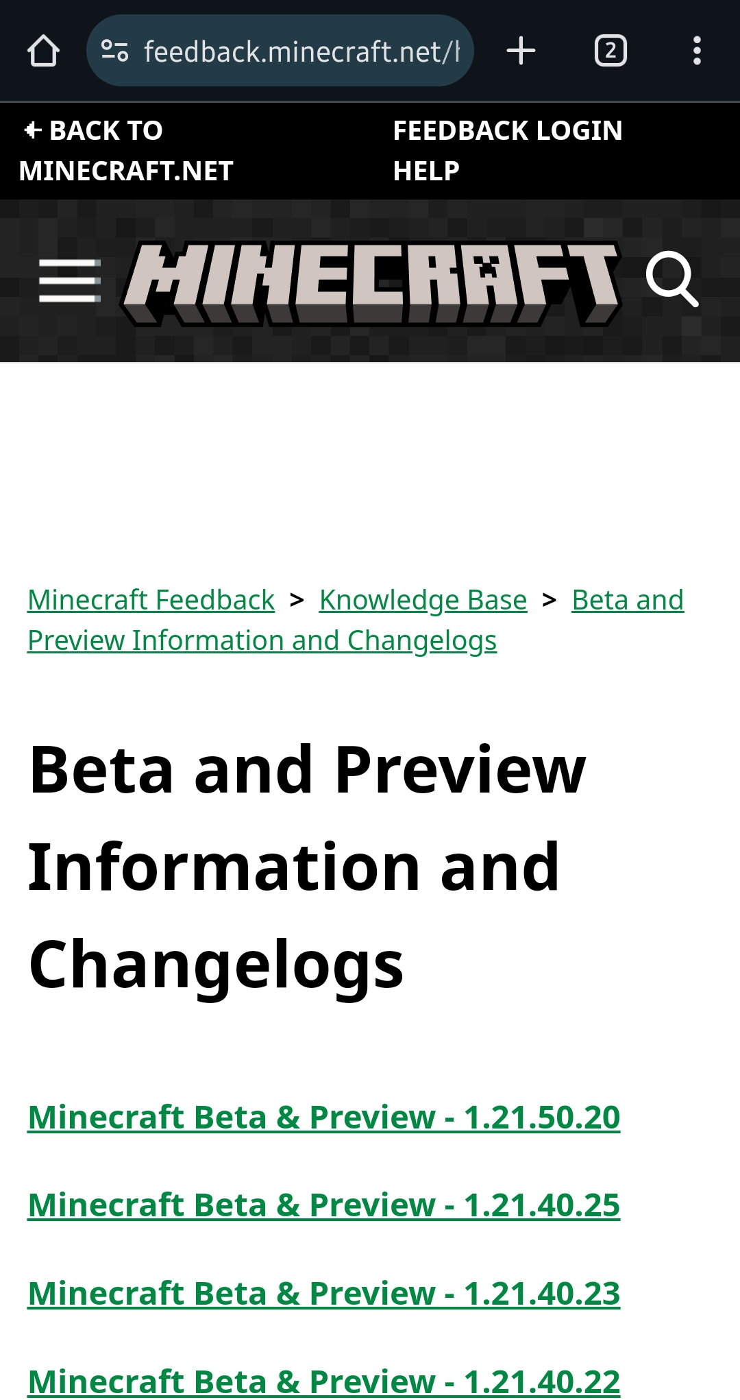 I updated Minecraft to Beta 1.21.50.22, then I went to look at the changelogs for what have changed, but Beta 1.21.50.22 is not in the changelogs