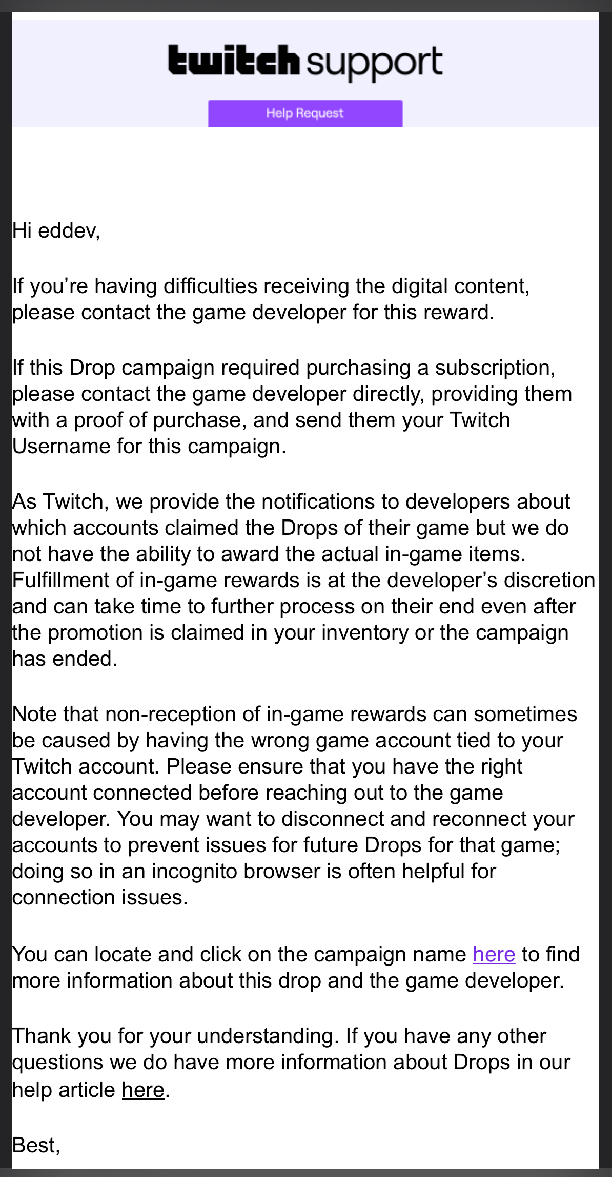 I’m awaiting for Twitch’s answer.