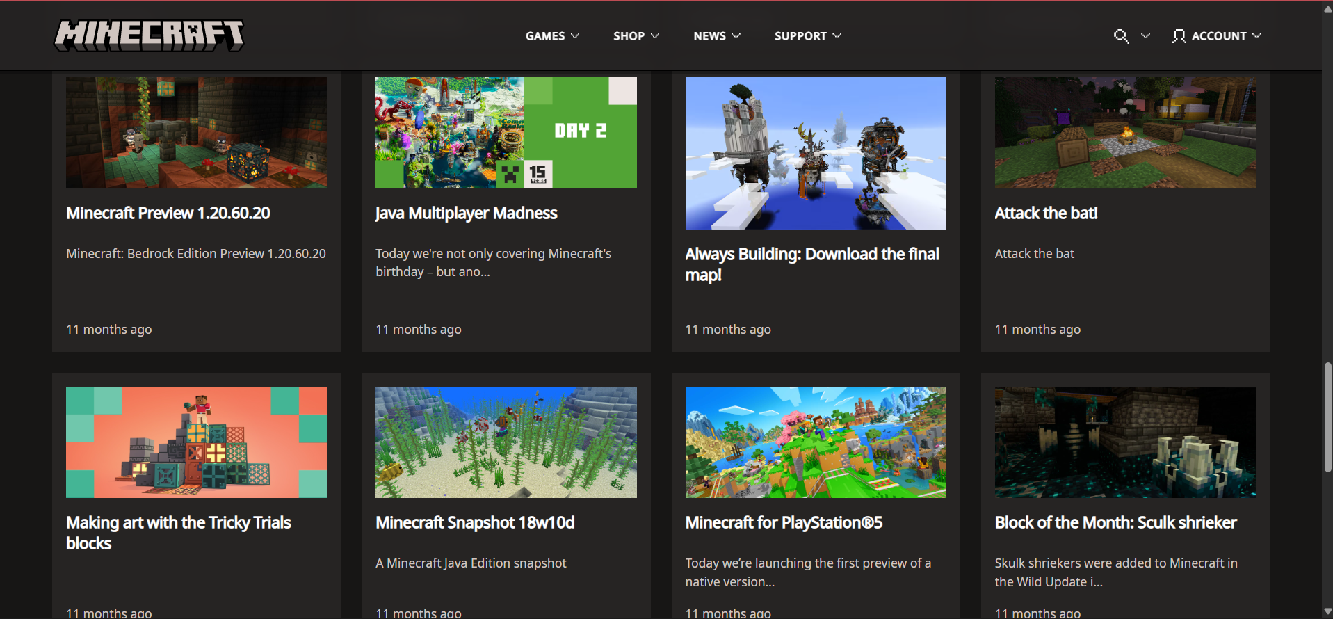 When I opened articles on minecraft.net, none of the articles were in order, the sixth article was for the Trails and Tails update, and most of the “articles” weren’t articles, and the dates for the articles were wrong, so every time I want to see the newest articles, I have to go to an article and scroll to the bottom.