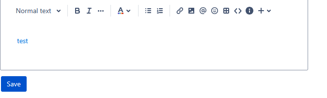 Clicking the ‘link’ icon on the comment box, adding a link and putting the display text as ‘test’ correctly puts it into the comment box: