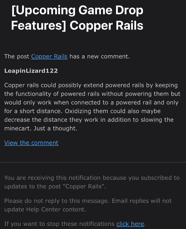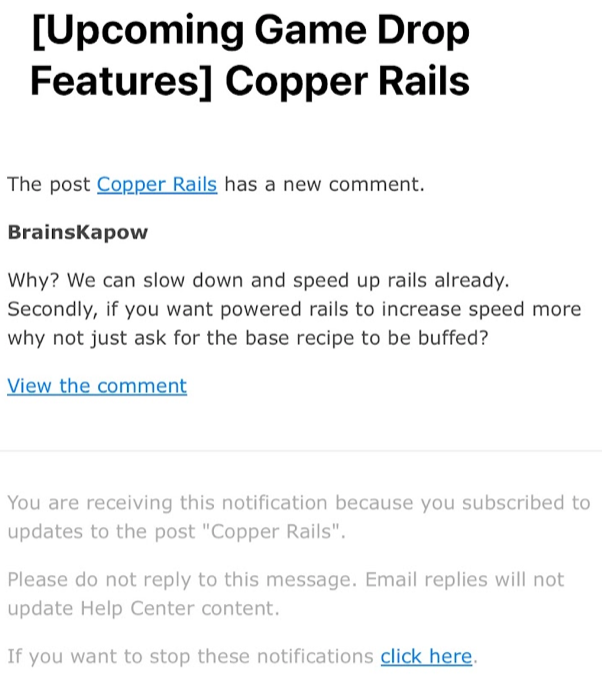 The post was original to the topic it was put in and now it’s just gone? It was literally at the top of “Upcoming Gamedrop Features” under the title “Copper Rails.”